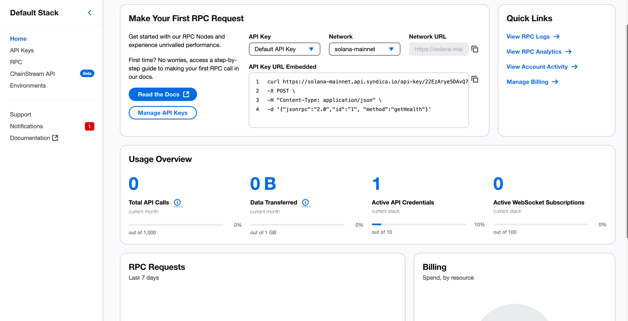 Syndica is a Solana-only RPC provider with a strong emphasis on observability and developer experience. The platform's architecture employs load balancing techniques that distribute requests across multiple nodes, ensuring consistent performance even during network congestion or individual node failures.